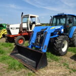 2008 NEW HOLLAND TL 100A MFWD LOADER TRACTOR, 3201 HRS, CAH, W/ NH 830-TL HYD. LOADER W/ 84” MATERIAL BUCKET, 18.4X34” TIRES, 2 SVC, 540/1000 PTO, (NEW CLUTCH IN 2023) 2ND OWNER, SN#HJS112697