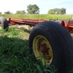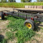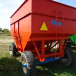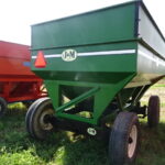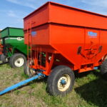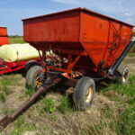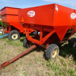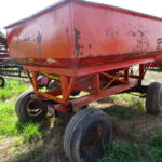 FICKLIN #435 GRAVITY BOX ON KORY #6072 WAGON GEAR, 11LX15” FLOTATION TIRES