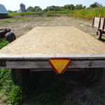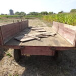 7’X16’ WOOD FLAT RACK WAGON W/ HYD. HOIST, 4 TON GEAR