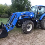 2006 NEW HOLLAND TS-115 MFWD LOADER TRACTOR, CAH, 5226 HRS, POWERSHIFT, REVERSER W/ QUICKE Q55 HYD. LOADER W/ EURO HOOKUP, TURBO, 2 SVC’S, 3 PT. PTO, NEW 460/85R-38 BKT REARS & NEW 380/85R-28” FRONTS, 1 OWNER, SN#ACP26167