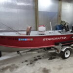 MOM 1989 STARCRAFT 16’ ALUMINUM FISHING BOAT, W/ MERCURY 20 HP 2 STROKE TILL;ER HANDLE, ON SHORLANDER TRAILER