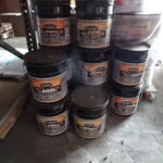 PAILS OF WET-STICK ROOF CEMENT